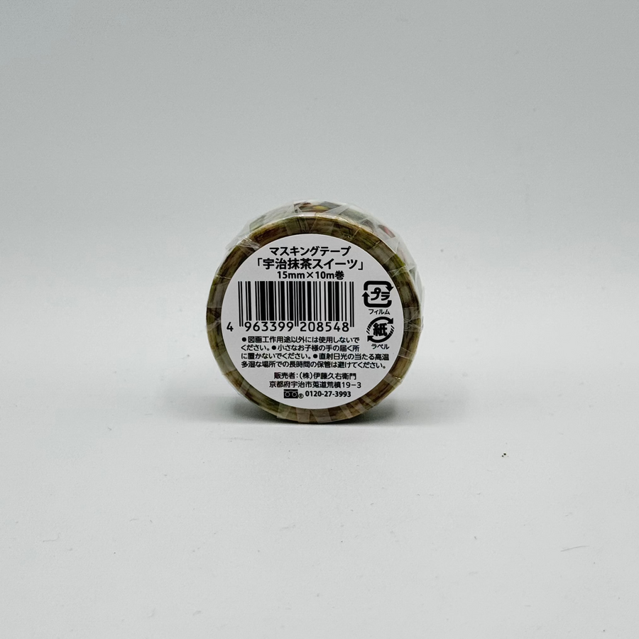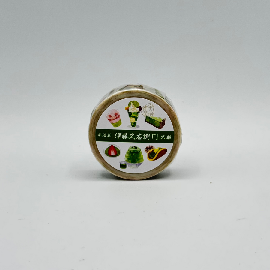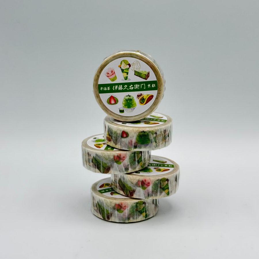 These are washi tapes designed by the Kyoto Uji 伊藤久右衛門 Itohkyuemon Matcha House. This is the Matcha Desserts design! These are great for journals, planners, and for decorating your notebooks!