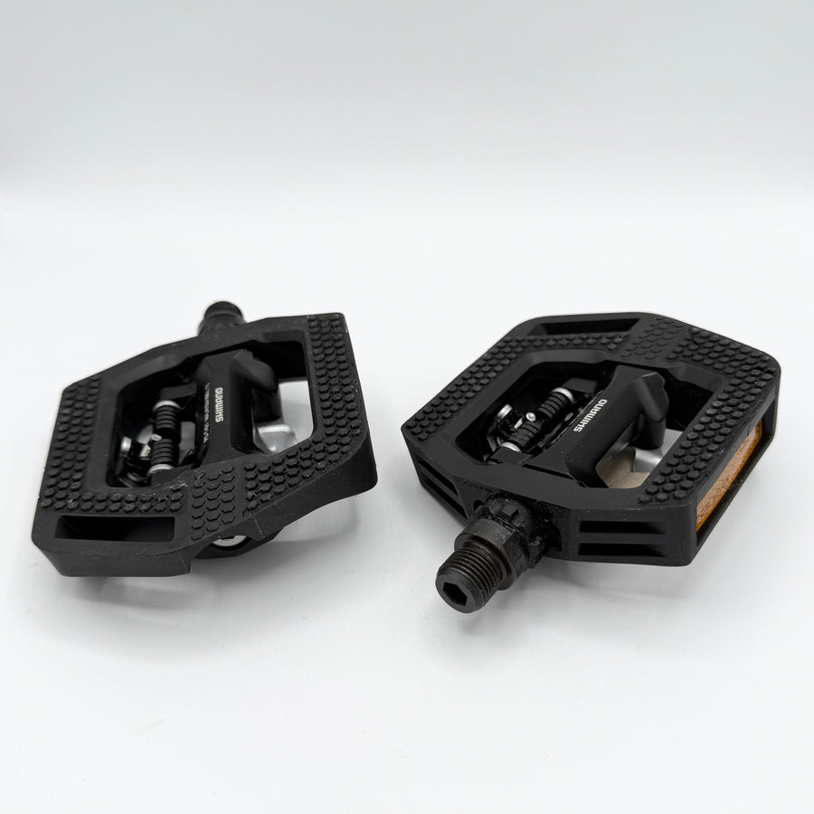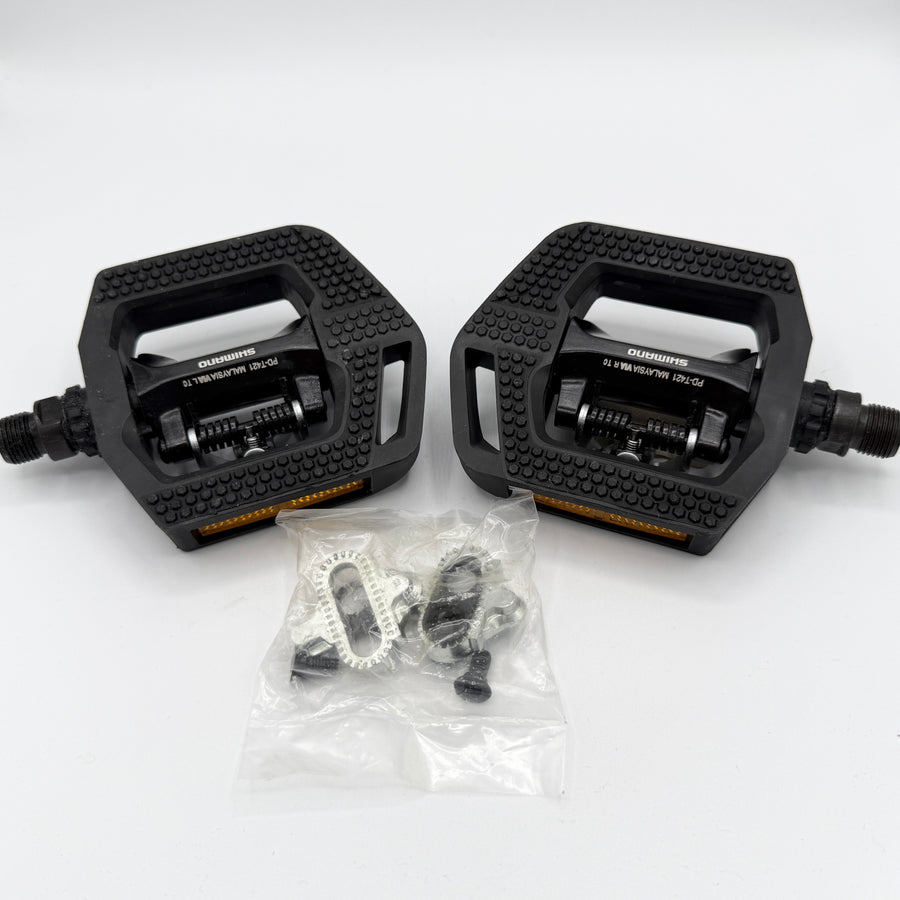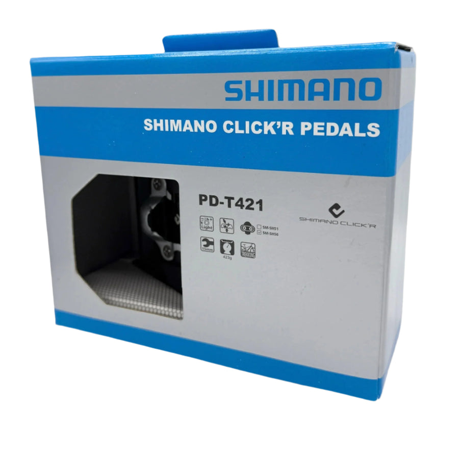 The Shimano PD-T421 Click'R SPD Pedals deliver unmatched versatility for casual and commuting cyclists. Designed with a dual-sided interface, one side features a light-action Click'R SPD binding for easy clip-in, while the other side offers a concave platform with anti-slip surface for standard shoes. Ideal for new clipless users, the Click'R mechanism uses reduced spring tension for effortless engagement and release. With integrated reflectors and a durable chrome-moly axle, these pedals provide dependable performance and added safety on every ride. Includes SM-SH56 multi-release cleats.