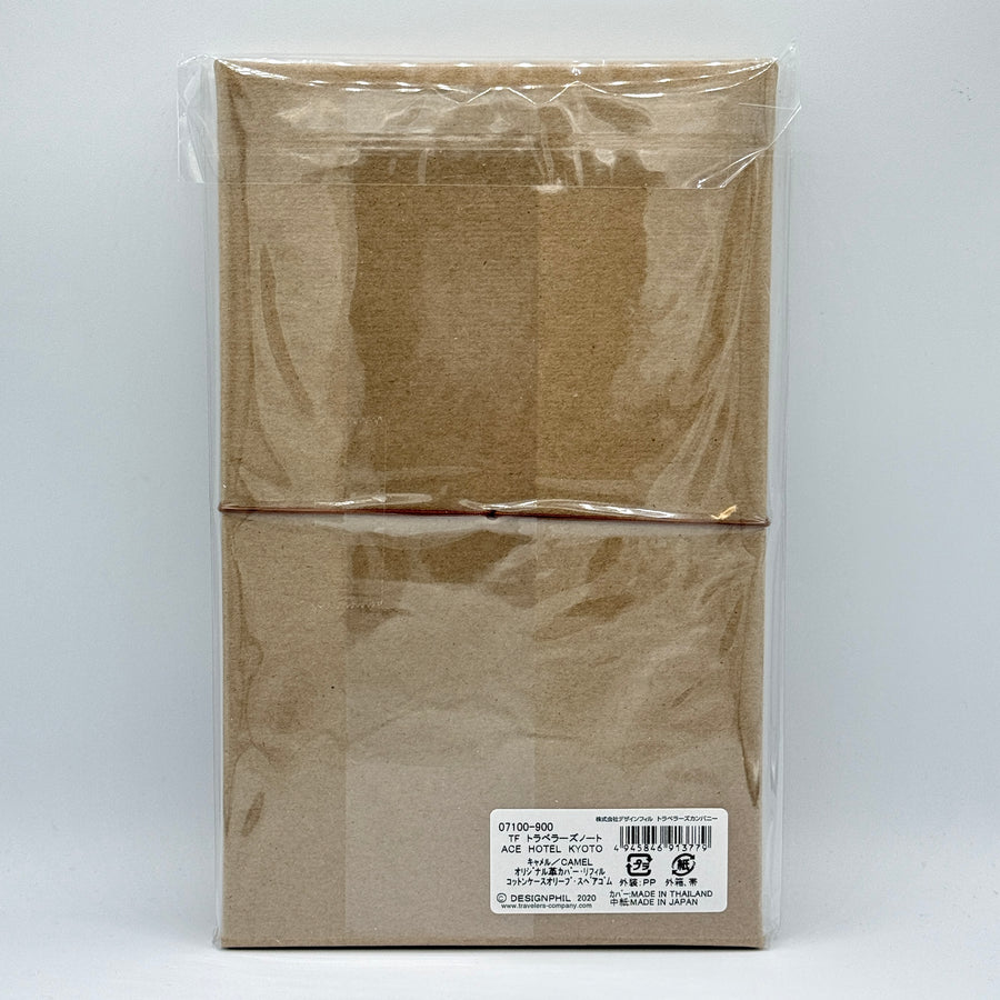 Celebrate the harmonious blend of travel and design with the Traveler's Company x Ace Hotel Kyoto Regular Size Starter Kit. This exclusive collaboration commemorates the opening of Ace Hotel Kyoto in June 2020, marking a continued partnership that began in 2015. The kit features a Camel-colored leather cover, crafted with precision and care, embodying the spirit of both brands. Accompanied by a 64-page blank MD Paper refill, a cotton storage bag, and a spare rubber band, this starter kit is designed for travelers and creatives alike, offering a canvas to document journeys, thoughts, and inspirations.